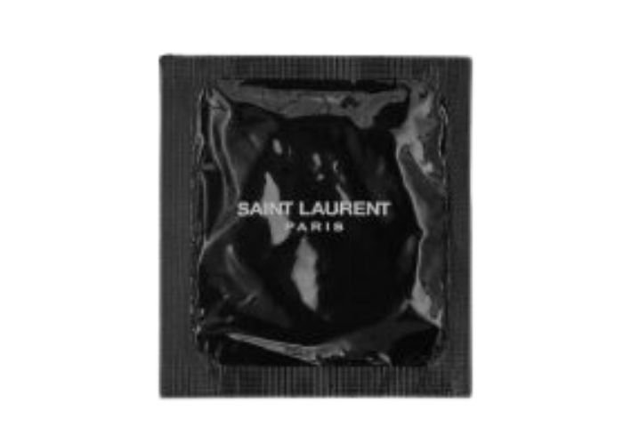 Condom diseñado por la prestigiosa firma de lujo Yves Saint Laurent, presentado en un elegante color negro.